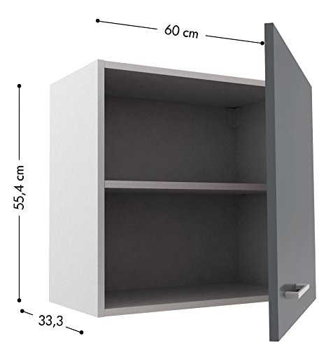 Specification: Berlioz Creations PRIMA PG6HPG Hängeschrank für Küche, 1 Dekortür in glänzendem Grau, 60 x 33,3 x 55,4 cm, 100 Prozent französische Herstellung