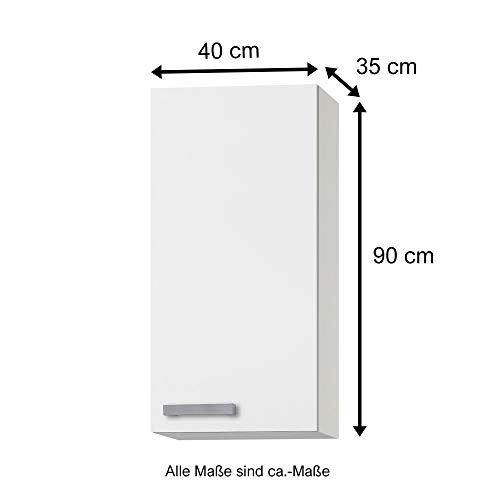 MMR Hängeschrank Küche DALLAS, 1-türig, 40 cm breit, 90 cm hoch, wechselseitig montierbare Tür, Weiß