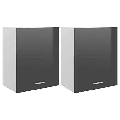 Specification: Mogou Hängeschränke 2 STK Küchenhängeschränke, Küchenschrank Hängend, Wall Cabinet, Oberschrank, Wandschrank Küche, Hochglanz-Grau 50x31x60 cm Spanplatte