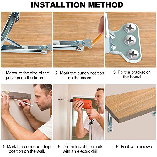 Specification: OLRWSLG 2 Stück Einstellbare Hubstützhalterung Klappenbeschlag Heben Unterstützung 12-fach verstellbar Verriegelungs Scharnier für Betten, Schreibtischdeckel, Zeichentische – (100-120 kg)