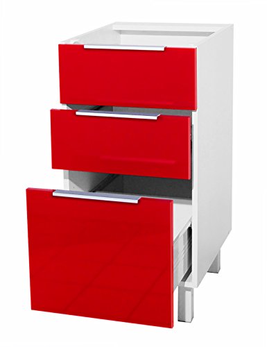 Specification: Berlioz Creations CT4BR Unterschrank für Küche mit 3 Schubladen, in rotem Hochglanz, 40 x 52 x 83 cm, 100 Prozent französische Herstellung