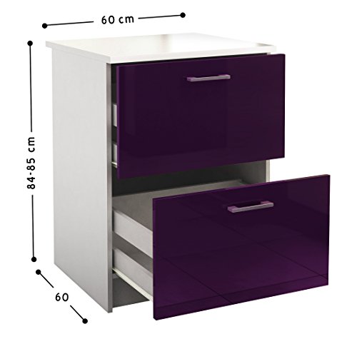 Specification: Berlioz Creations PRIMA PG6BCA Unterschrank für Küche mit Arbeitsplatte, 2 Dekorschubladen in glänzender Auberginefarbe, 60 x 60 x 85 cm, 100 Prozent französische Herstellung