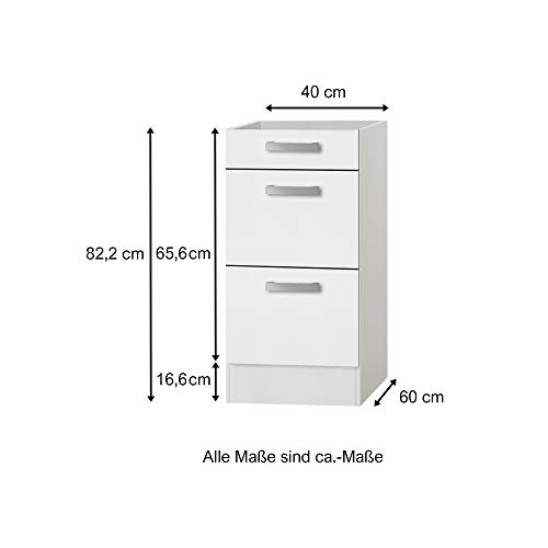 Specification: MMR Auszug-Unterschrank Küche DALLAS, ohne Arbeitsplatte, 1 Schublade, 2 Auszüge, 40 cm breit, Weiß
