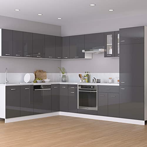 Voupuoda Herdumbauschrank, Küchenschrank, Herdschrank, Backofenschrank, Unterschrank, Hochglanz-Grau 60x46x81,5 cm Spanplatte