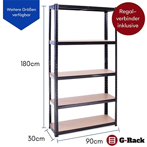 G-Rack Schwerlastregal, 1 Lagerregal 5 Fächer – für Keller, Werkstatt, Abstellraum, Garage – Metall I 180 x 90 x 30 cm I 175 kg Last je Regalboden (Total 875 kg) I 5 Jahre Garantie