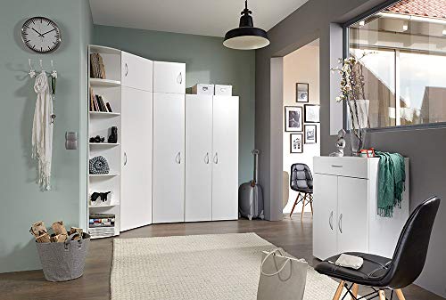 Specification: lifestyle4living Eckschrank in weiß mit viel Stauraum, Kleiderschrank mit 1 Tür und 5 verstellbaren Böden, Stauraumschrank B/H/T ca. 80/185/80 cm