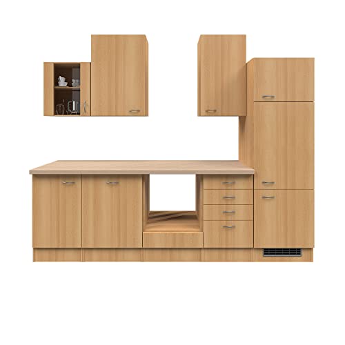 RIWAA – Küchenzeile MARPLE ohne Elektrogeräte – Leerblock – 8-teilig – Breite 280 cm – Buche – Made in Germany