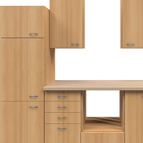 Specification: RIWAA – Küchenzeile MARPLE ohne Elektrogeräte – Leerblock – 8-teilig – Breite 280 cm – Buche – Made in Germany
