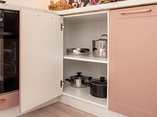 • Die Tiefe der Unterschränke beträgt 52,4 cm (mit Fronten). Eine Küchenarbeitsplatte hat standardmäßig eine Tiefe von 60 cm. Zwischen der Rückseite der Unterschränke und der Wand entsteht so ein Freiraum, wo Sie Ihre Anschlüsse führen können. Passende Seitenblenden und seitliche Sockelleisten sind erhältlich.
