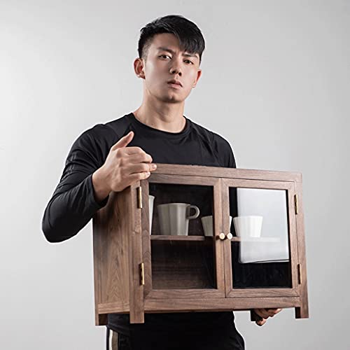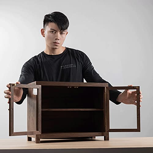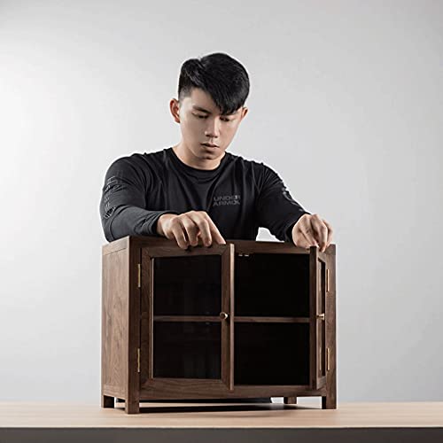 Specification: zyr Arbeitsplatte Lagerschrank Schwarz Walnuss Holz Sideboard Home Schrank Dekoration Schrank Transparent Glastür Doppelschicht Kleines Kabinett Wohnzimmer