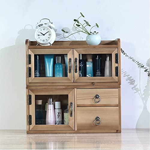 zyr Desktop-Aufbewahrungsschrank Massivholz Kosmetik Aufbewahrungsbox Holzkiste Küche Badezimmer Arbeitsplatz Kabinett Mini Food Storage Cabinet (Size : B)