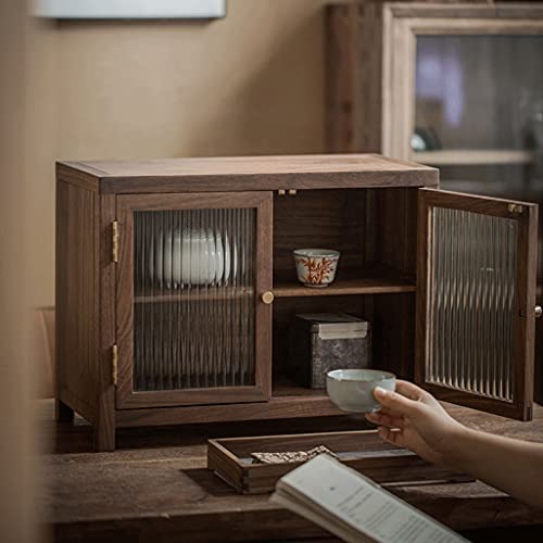 zyr Desktop-Aufbewahrungsschrank Mit Glastür Sideboard Schwarznuss Holz Kleiner Schrank Dekorationsschrank Aufbewahrungsschrank Küche Badezimmer Arbeitsplatte Schrank Doppelschicht