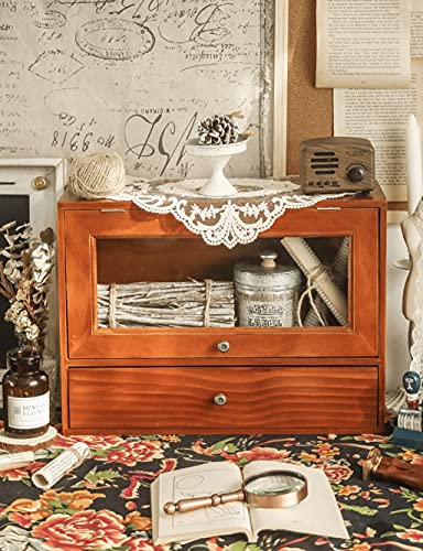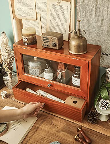 Specification: zyr Desktop-Becher Aufbewahrungsbox-Kaffee-Schrank-Retro- Hölzerne Kleine Schrank-Glas-Dressing-Tisch-Hautpflege-Kabinettantikrahmen