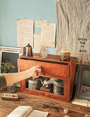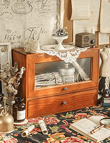 zyr Desktop-Becher Aufbewahrungsbox-Kaffee-Schrank-Retro- Hölzerne Kleine Schrank-Glas-Dressing-Tisch-Hautpflege-Kabinettantikrahmen