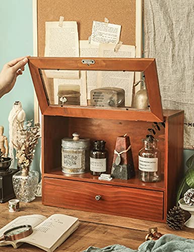 Die massive hölzerne staubfeste Box ist mit einer Glaskabinetttür ausgestattet, die effektiv staubfest ist, und zeigt die Sammlungen, den rustikalen Stil der Vintage an.