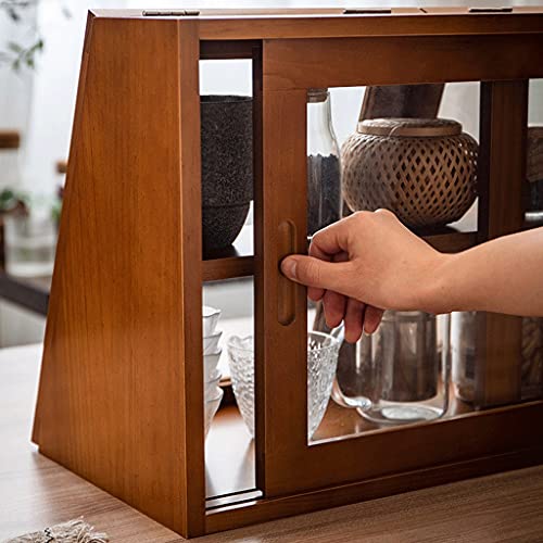 zyr Japanischer Stil Kaffee-Schrank Massivholz Sideboard Küche Aufbewahrungskabinett Desktop Kabinett Kleiner Glas Schrank Lagerhaus Haushaltsweinkabinett (Color : Dark Brown)